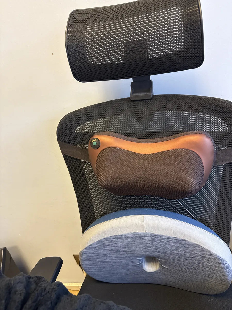 Siente un masaje profundo tipo shiatsu con calor integrado, ideal para aliviar tensiones después de un día pesado. Portátil, cómodo y perfecto para casa, oficina o auto.
